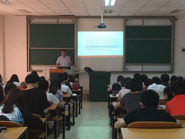 讲座由外国语学院院长徐志英教授主持,副院长骆洪教授、副院长王晋军教授和法语系、英语系、日语系的师生们以及研究生公共英语教研室的老师们一起认真聆听了褚孝泉教授的精彩讲座。