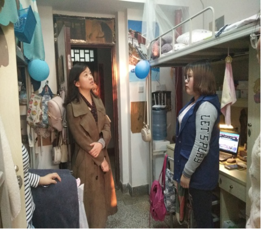 何淼淼副书记及辅导员在走访宿舍时,关切各位同学是否有不适之处,是否有需要帮助的地方。副书记尤其关注是否使用遮光布的问题,嘱咐同学们如果选择使用,切记要通风,避免空气不流通。同时还要注意防火防盗,注意安全。在学习方面,副书记也指出要合理安排大学时间,珍惜学生时光,为大四能有更好的选择作铺垫,有一个更好的未来!