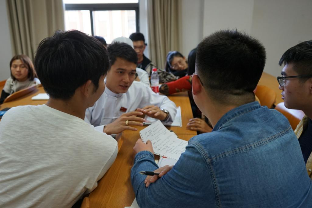 分组讨论环节开展时,各组针对各自相应的讨论主题展开了长达近一小时的激烈讨论,座谈会讨论气氛热烈,互动频繁,中缅青年双方积极交换意见,深入沟通,取得了良好效果。讨论结束后,各组派出代表上台作出了精彩的总结发言。