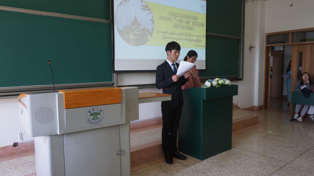 缅甸语系系主任李堂英老师为本次比赛致辞,鼓励同学们展示缅甸语专业学生的精神风貌,敢于不断地挑战自我和超越自我,表扬同学们在缅甸语学习中的努力勤奋,并预祝本次演讲比赛圆满成功。