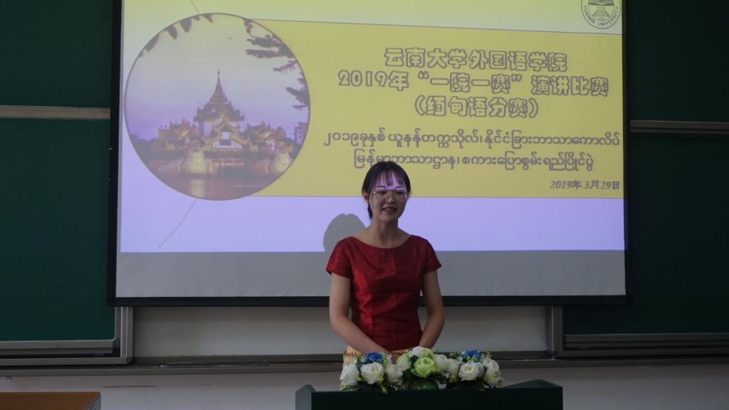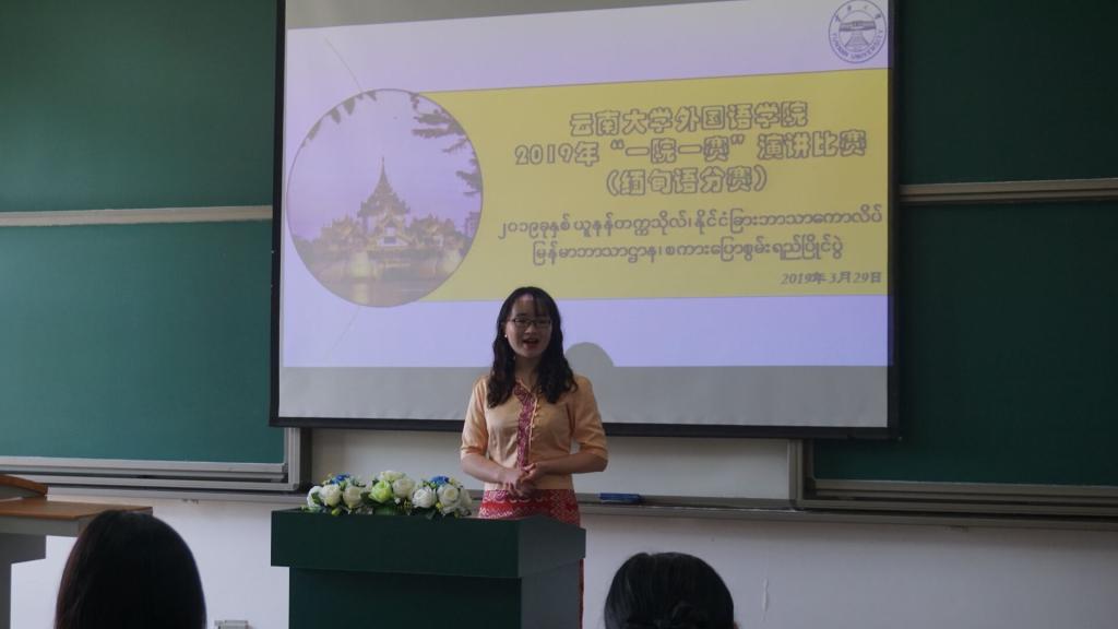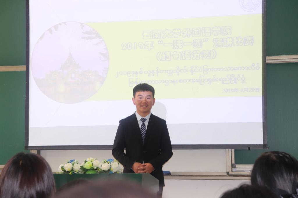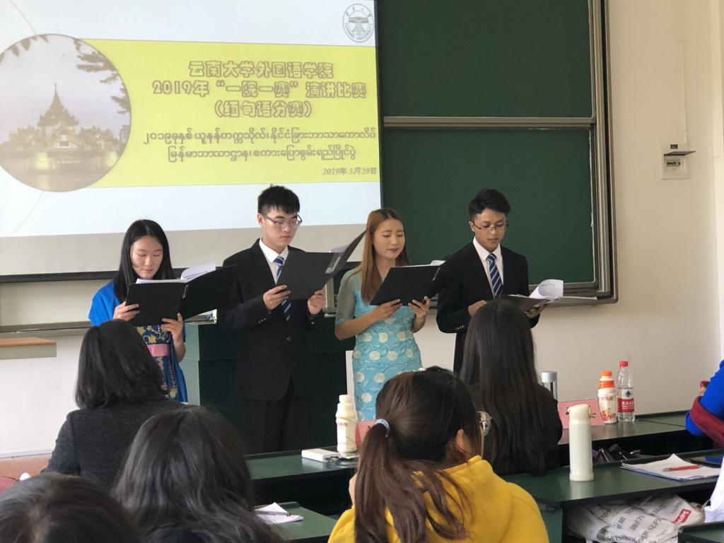 2019年3月29日,J9平台缅甸语系在中邦楼101教室举行“一院一赛”演讲比赛缅甸语分赛。缅甸语系外专杜梭莫莫老师、外教杜早博隆老师、外国语学院李堂英老师、庞俊彩老师、高辉老师担任本次比赛的评委。