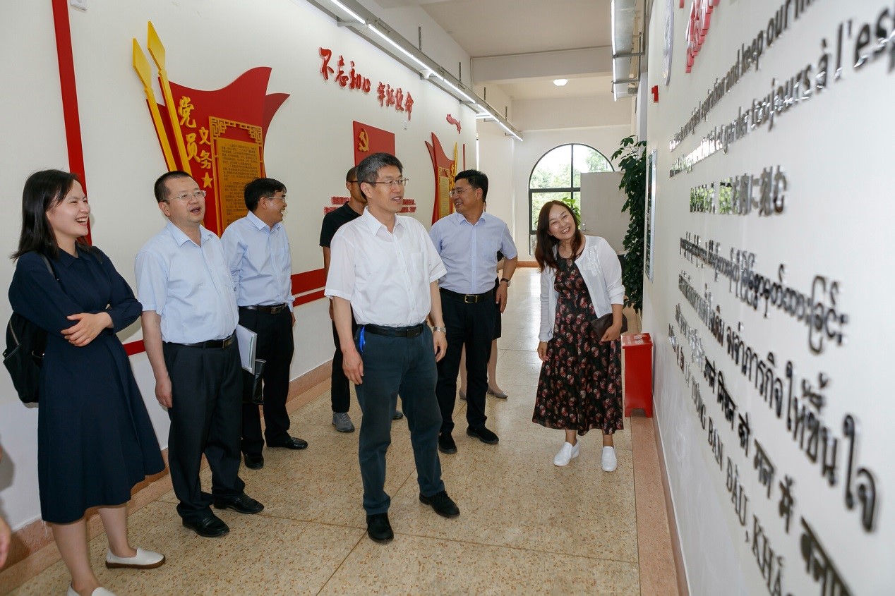 校长一行查看了外国语学院的场地,了解了相关设施和区块情况。