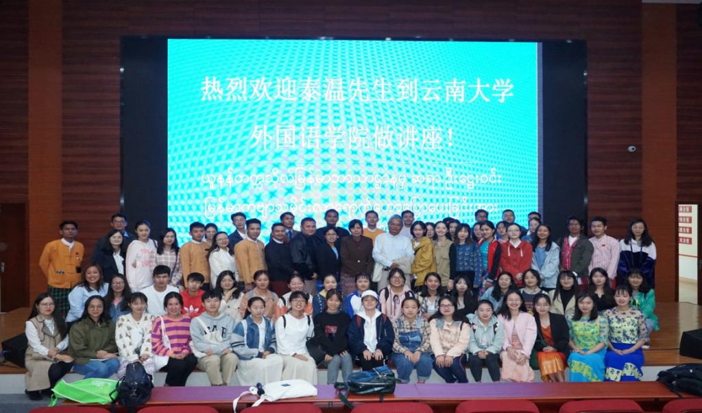生动有趣的交流会结束后,缅甸著名诗人吴泰温为缅甸语系全体师生做了题为“回顾缅甸诗歌百年历程”的学术讲座。泰温先生1954年出生于缅甸,现任职于民族文学奖诗歌委员会。他的第一本诗歌文集是《初春的美梦》,于1978年和丹迎昂共同出版。后来又陆续在杂志上发表各种诗歌,并于2000年完全踏入缅甸文学界。于2003—2006年、2007年、2013年先后分别担任缅甸《缅甸踏依崩》和《班索坦艺术与文化杂志》的编辑。2010年获金珠文学奖(诗歌)。此外,他还进行儿童文学方面的创作,并于2016 年出版了《儿童诗歌》等,2019年出版了《在平坦的沙滩上绘画》。