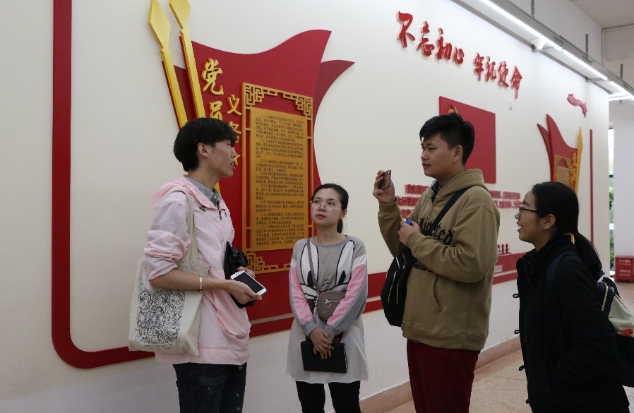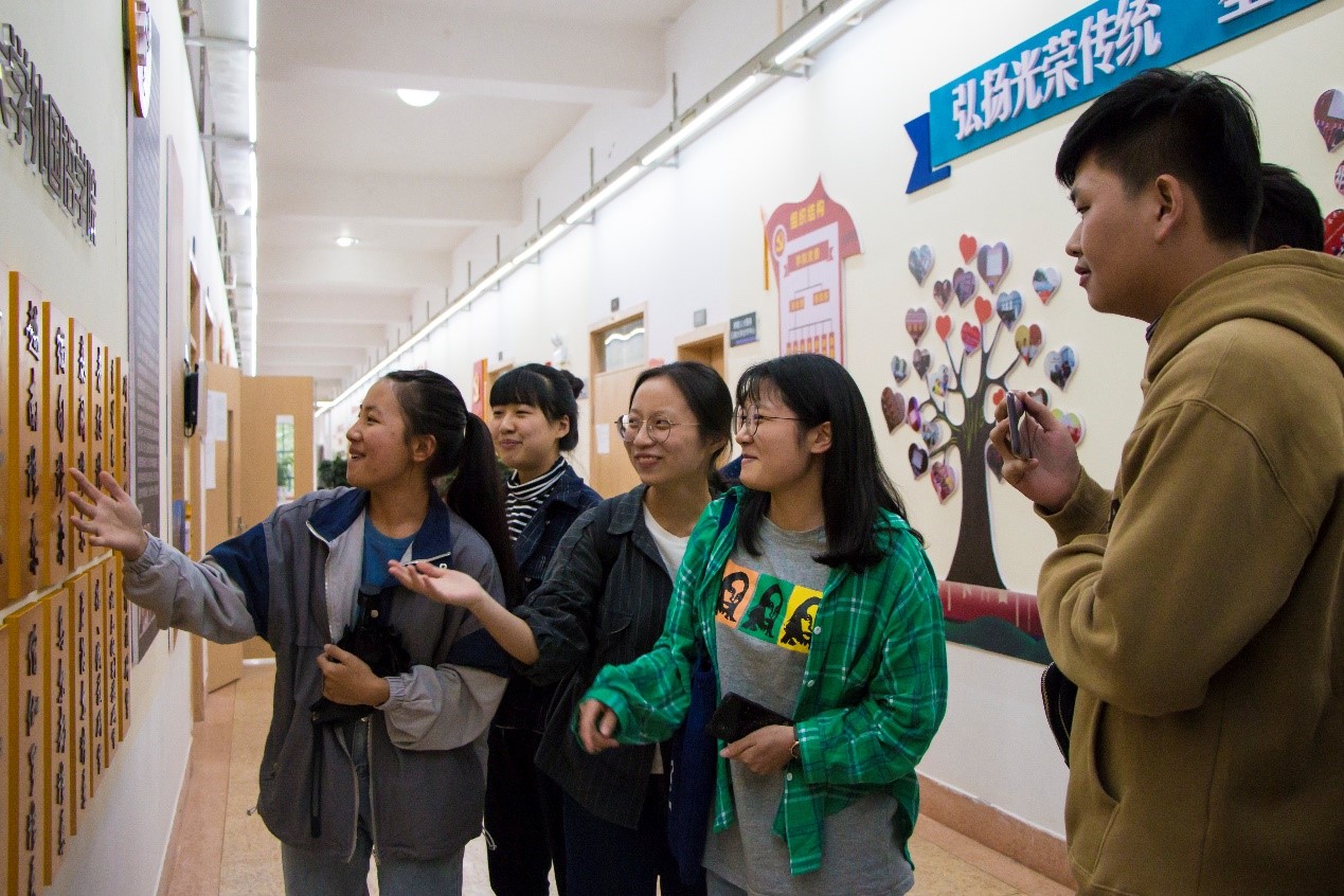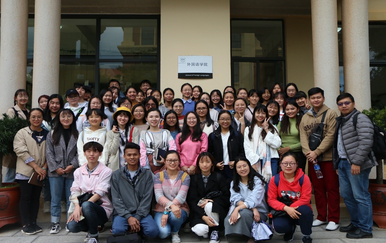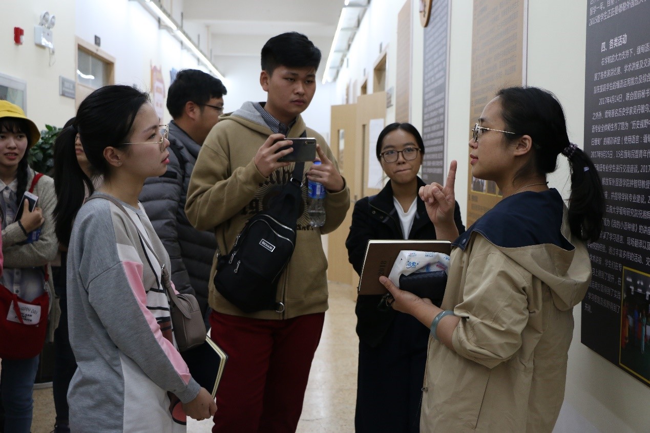在缅甸语系老师和同学们的热情接待下,来自缅甸的10位大学生参观了外国语学院楼的文化长廊,并了解云南大学缅甸语专业的建设情况。现场气氛活跃,缅甸语专业的同学们积极使用缅甸语与来自缅甸的朋友们大胆、自信交流,相互介绍情况,感觉是上了一堂十分接地气的口语课程。