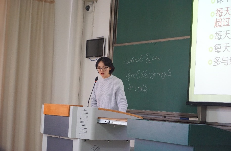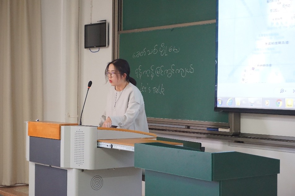 大四同学向缅甸大学生介绍学习缅甸语的体会