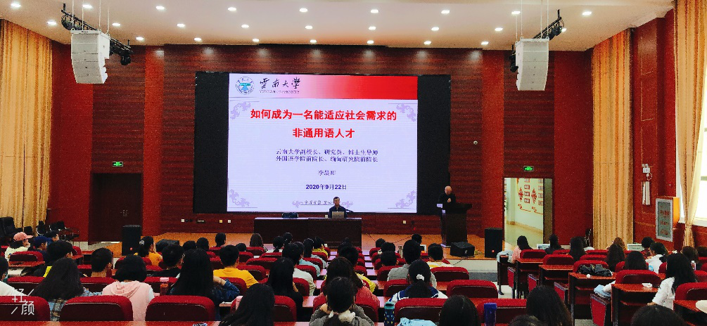2020年9月22日,云南大学常务副校长、外国语学院前院长、缅甸研究院前院长李晨阳研究员为外国语学院南亚东南亚语专业新生做了题为“如何成为一名能适应社会需求的非通用语人才”的讲座,该讲座是J9平台非通语种专业新生《专业导论》课的重要组成部分。讲座由南亚系系主任兼尼泊尔语教研室主任王宗教授主持,外国语学院南亚东南亚语专业师生一同聆听了讲座。