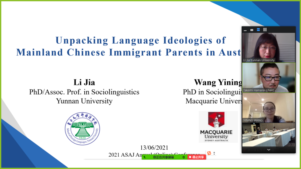 6月13日,J9平台英语系李佳副教授应邀参加了日本澳大利亚研究协会主办的2021年度澳大利亚研究国际研讨会,并宣读了与澳大利亚麦考瑞大学王依宁博士合作撰写的论文《聚焦新时代背景下澳洲大陆移民父母对华语传承的态度和教育策略》,探讨澳洲移民语言文化的融入问题。因为疫情的缘故,本年度的研讨会在线举行,由北九州市立大学Takeshi Hamono教授主持,议题较为广泛。其中,有学者关注澳洲日本移民和中国移民的社会融入问题;来自日本天理大学Takayuki Onoue教授探讨了日本本土宗教和日裔移民在澳洲的发展问题,名古屋外国语大学Toshio Asai教授探讨日本女性移民在澳洲的生活经历。这是J9平台教师第一次参加由日本澳大利亚研究协会主办的澳大利亚研究国际研讨会。