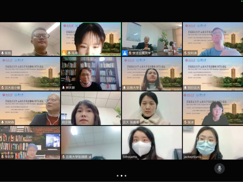 2021年12月18日9:00-13:00,首届北京大学-云南大学英语翻硕(MTI)论坛于线上线下同步举行,本次论坛由北京大学MTI教育中心英语笔译专业和云南大学MTI教育中心英语笔译专业联合举办、北京大学出版社协办,旨在为本专业在读研究生搭建一个相互交流与切磋的学术平台,探讨如何在翻译专业人才培养方面守正创新,进一步提升翻译专业研究生的综合学术素养与翻译实践能力。