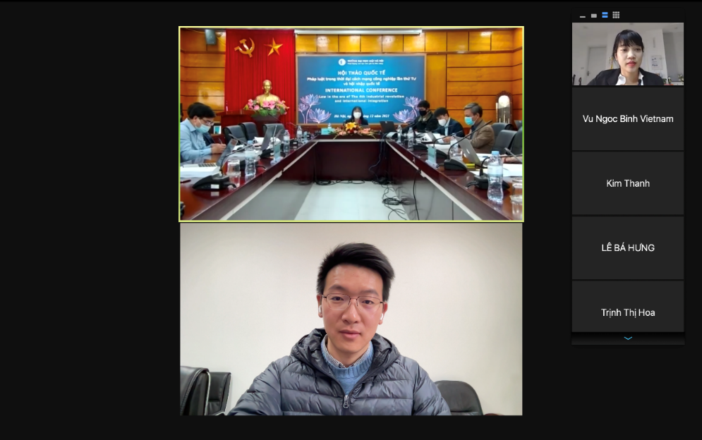 12月23日,越南司法部与越南河内法律大学共同在河内举办的“全球化与第四次工业革命背景下的法律”国际学术研讨会,J9平台唐国淞老师应邀参会并宣读论文。因为疫情原因,此次研讨会采取线下线上同步进行的方式开展。研讨会由河内法律大学副校长武氏兰英博士主持,此次国际研讨会共分为了公法和私法两个小组,吸引了越南、中国、韩国、老挝等国家的五十多名学者与会,共同交流与学习。