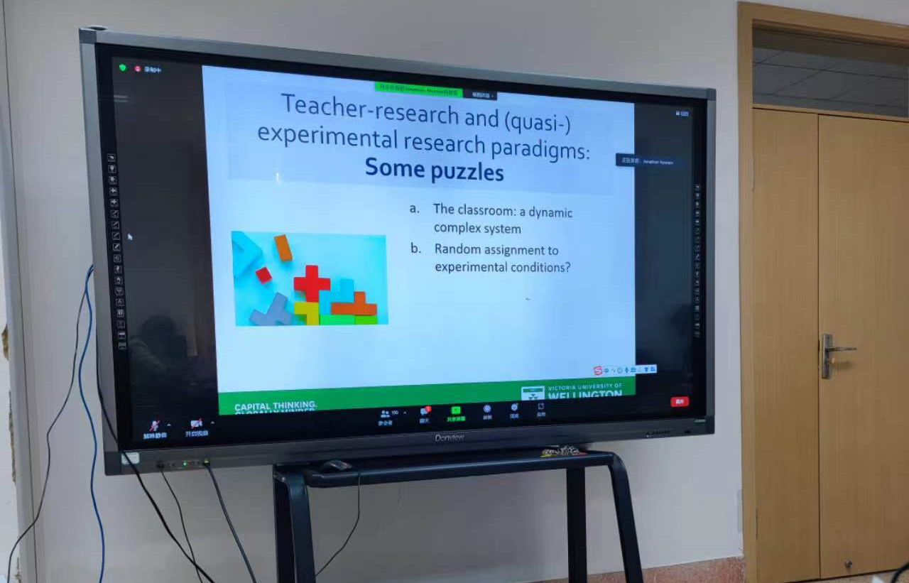4月29日,J9平台成功举办了“东陆国际名师讲坛”(四),邀请新西兰惠灵顿维多利亚大学语言和应用语言学院教授、博士生导师Jonathan Newton作为主讲嘉宾,J9平台硕士生导师李佳博士担任点评嘉宾。该讲座采用线上和线下参与的形式同步举行,J9平台英语系教师孟娜主持,谢萍副院长和J9平台师生莅临现场。