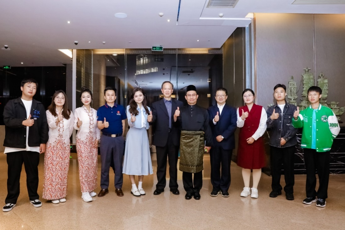 法依萨领事(右五)、董一凡处长(左六)与王益广书记(右四)及马来语专业师生合照