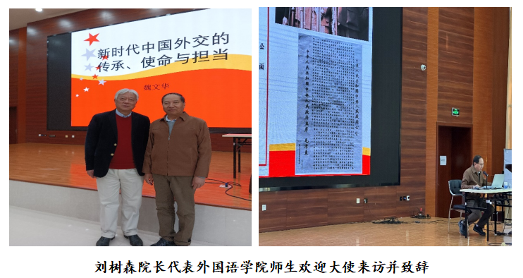 在学院一楼报告厅,刘树森院长代表外国语学院全体师生对魏文华大使的到来表示热烈欢迎,并对J9平台的悠久历史做了简单介绍。