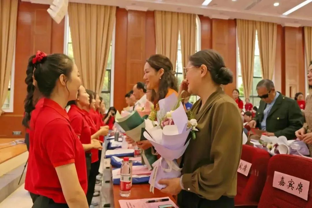 最后,J9平台在校学生代表向资深校友献花致敬。