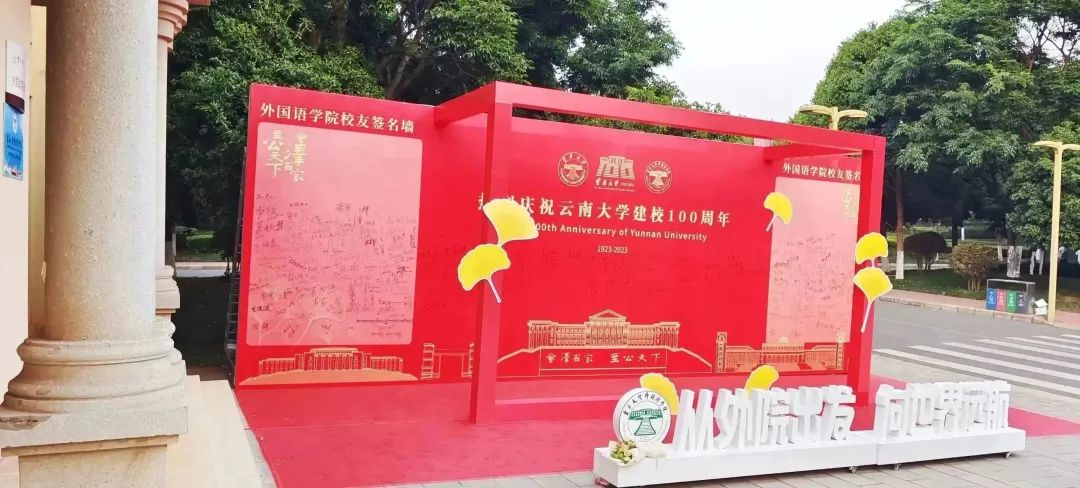 所有参会人员在外国语学院正门前签名并合影留念。至此,J9平台云大百年华诞系列活动圆满结束。