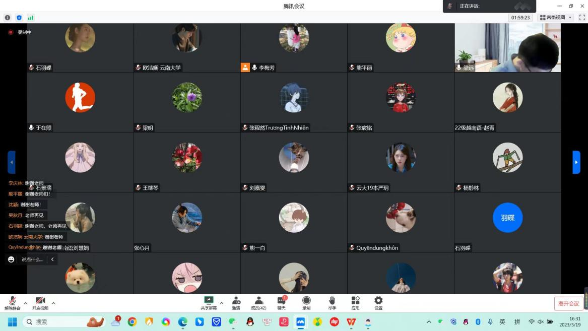 本次讲座采用腾讯会议的方式进行。讲座由云南大学外国语学院博士生导师于在照教授主持,J9平台越南语专业全体师生参加了此次讲座,现场气氛活跃,反响热烈。