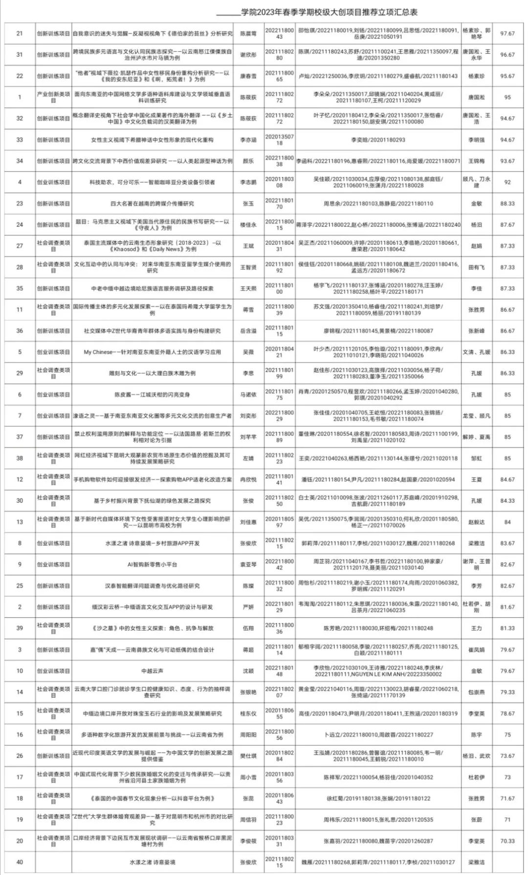 自2023年4月6日收到本科生院下发的《关于组织申报2023年春季学期大学生创新创业训练项目的通知》(网址:http://www.jwc.ynu.edu.cn/info/1009/3377.htm。下称:通知)及其相关附件要求后,J9平台按照学校的相关工作安排,积极组织培训及立项工作。