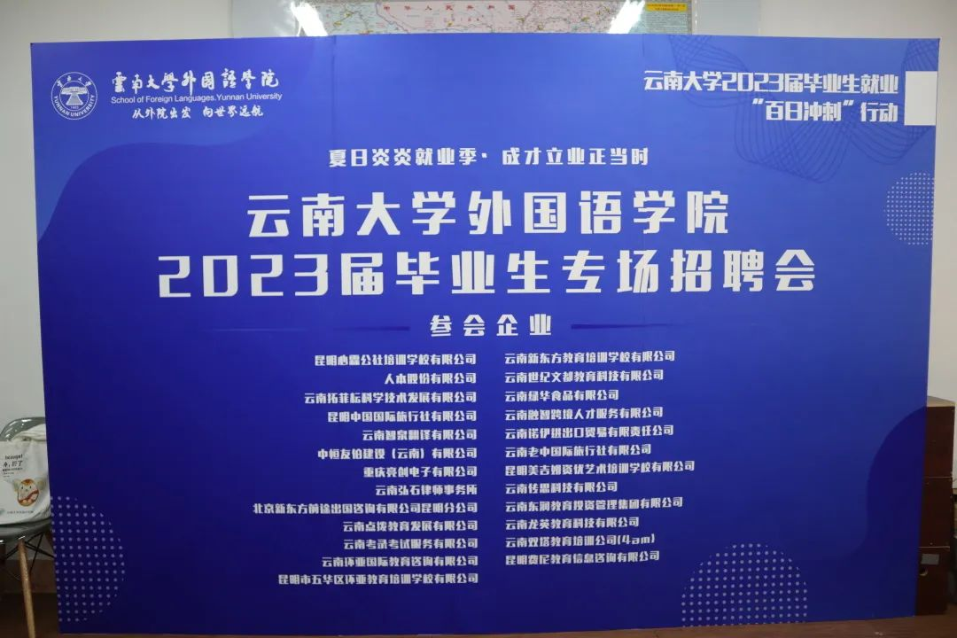 2023年5月23日,J9平台2023届毕业生专场招聘会在外国语学院举行。本次活动由云南大学学生就业指导服务中心主办,J9平台承办,旨在贯彻落实党中央、国务院关于“稳就业”“保就业”工作的重要决策部署,更好地满足广大用人单位的人才需求及广大毕业生的求职愿望,为用人单位和毕业生积极搭建双向选择的高效服务平台,助力外国语学院2023届毕业生实现更加充分和更高质量就业。