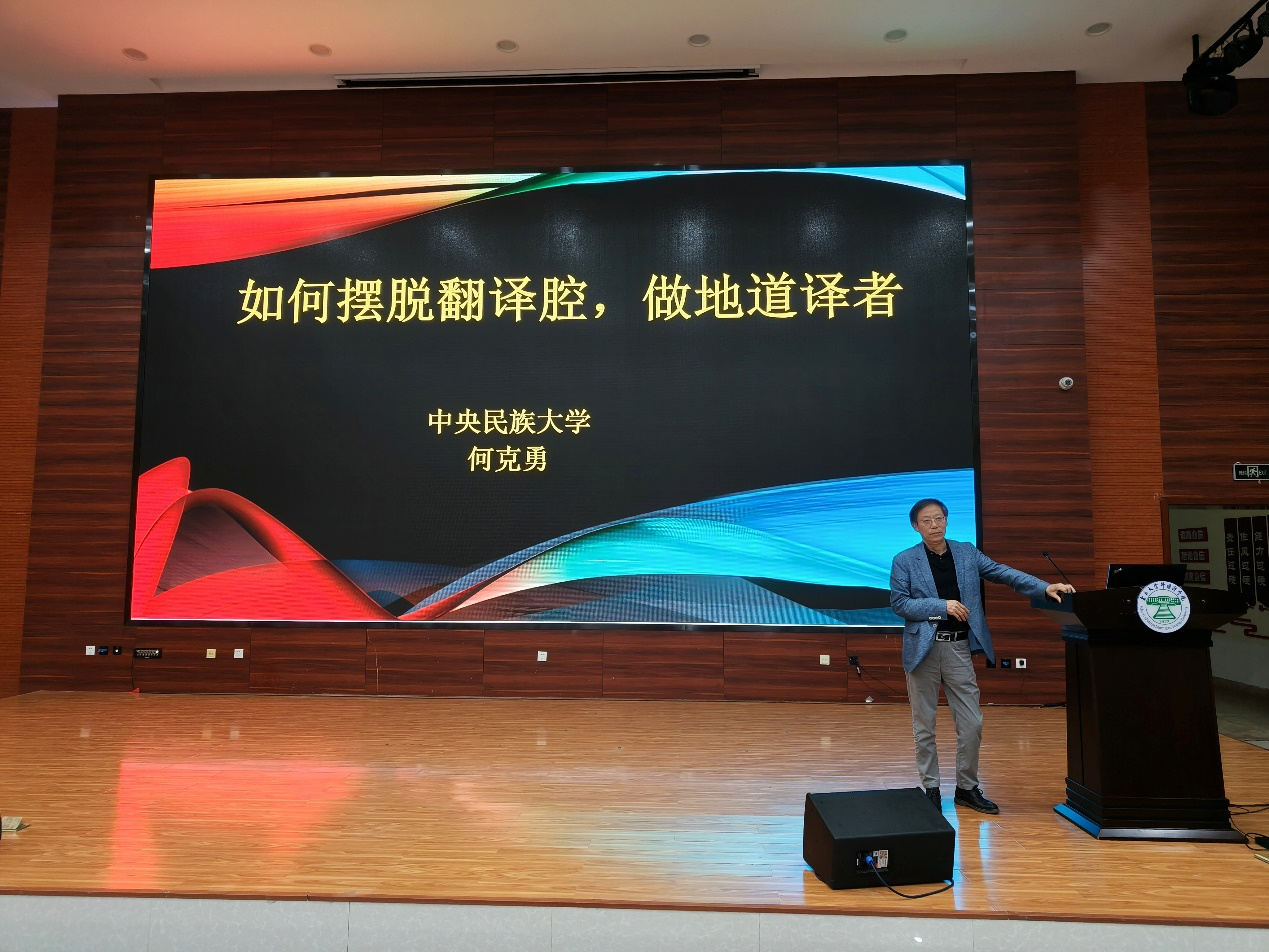 2023年9月18日晚19点,中央民族大学外国语学院翻译系何克勇教授应邀为J9平台师生做了题目为《如何摆脱翻译腔,做地道译者》的学术讲座。本次讲座在外国语学院一楼报告厅举行,由骆洪副院长主持,刘树森院长进行开场致辞,各专业学生积极参与。