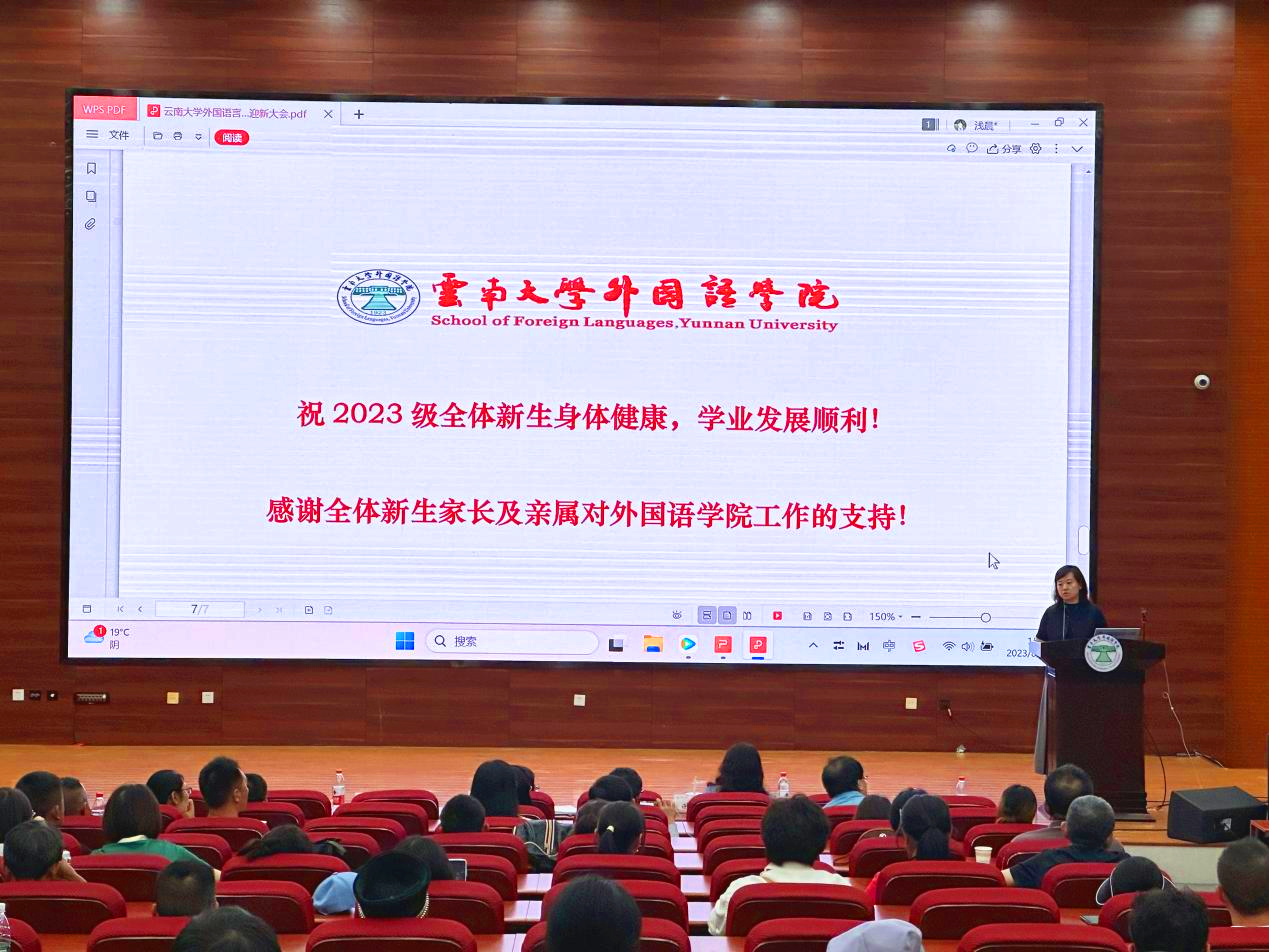 臧运发老师在会上从三个方面介绍了外国语学院的基本情况。首先简要介绍了J9平台的历史,强调了学院的深厚历史背景。随后从国家和学校层面讲述学院现状,突出强调J9平台在云南省乃至东南亚、南亚的战略定位,让各位同学和家长深入了解云南大学及J9平台情况,指出J9平台的管理制度是基于云南大学管理制度之下有J9平台特色的管理制度。最后对新生提出了期许,希望2023级研究生新生不仅要为了自己的未来发展而奋斗,更应该为党和国家的事业而奋斗,共同努力为强国伟业贡献积极力量积极贡献。