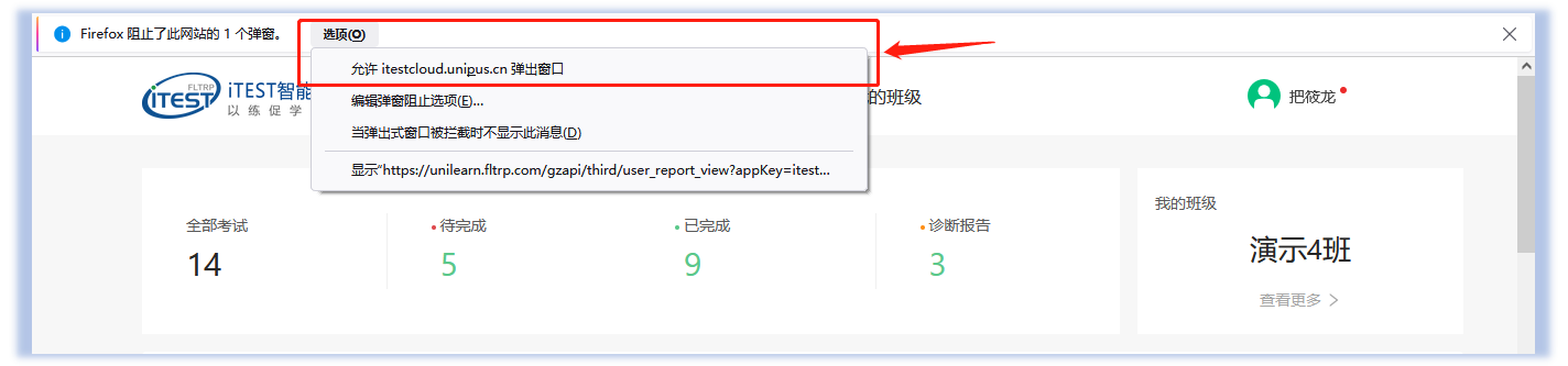 2.请提前下载Chrome、Firefox。请至少下载安装其中1个浏览器。(可前往下载专区下载安装:https://itestcloud.unipus.cn/xzzq)