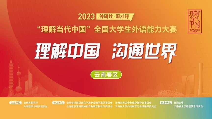 2023“外研社·国才杯”“理解当代中国”全国大学生外语能力大赛由云南省教育厅、外语教学与研究出版社主办,云南省外国语言文学类专业教学指导委员会、云南省英语专业教学指导分委员会、云南省非通用语种类专业教学指导分委员会、云南省大学外语教学与考试指导委员会合办,云南大学、云南省大学外语教学研究会承办。10月28-29日,“英语阅读”“英语写作”“英语笔译”“泰语综合”的云南省复赛以选手线上参赛的形式举行。11月2-3日,“英语演讲”“英语口译”的云南省复赛在J9平台举行。