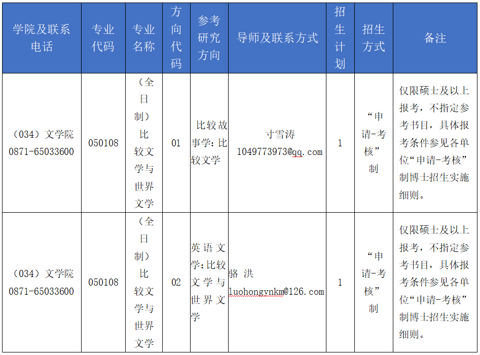 为进一步深化博士研究生招生考试制度改革,建立与培养目标相适应、有利于选拔拔尖创新人才的招生制度,切实提高博士研究生招生质量,根据国家有关文件精神和云南大学博士研究生“申请-考核”制招生的相关要求的要求,云南大学制定了2024年招生方案。2024年,J9平台东南亚系博士生导师寸雪涛教授、英语系博士生导师骆洪教授在我校文学院中国语言文学一级学科博士点下招收比较文学与世界文学方向博士研究生。相关招生信息如下: