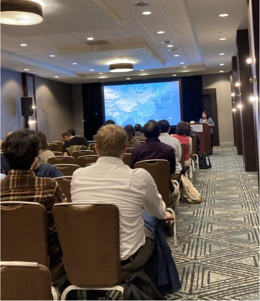 专题研究案例涉及中国、美国、墨西哥、缅甸、蒙古国、韩国、北朝鲜、尼泊尔等多个国家,专题评议人来自全球著名应用语言学家香港教育大学Angel Lin教授和美国俄亥俄州立大学Peter Sayer教授,本次专题研讨时间2小时,参与讨论的听众反响热烈,听众来自全球各个地区,包括著名的双语政策研究专家费城大学的Nancy Hornberger教授(图二)。通过与专家学者的交流和讨论,该专题将在国际应用语言学核心期刊上发表论文,以全球边境多语研究为主题,丰富应用语言学和社会语言学学科发展内容和研究范式。