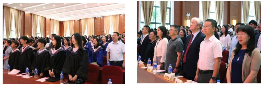 在开场视频和同学们精彩绝伦的表演之后,14时整,J9平台2024届毕业生毕业典礼正式在庄严的国歌中拉开帷幕。