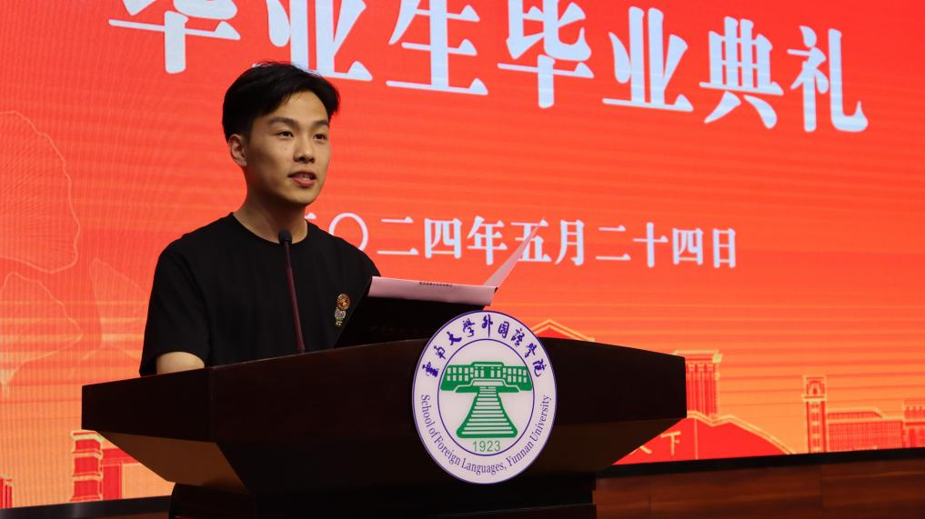 学生代表们也分享了他们的学习经历和对未来的展望。2021级英语语言文学专业硕士研究生赵音棋同学、2021级亚非语言文学专业硕士研究生谭雪萍同学以及2020级日语专业本科生邢彬同学分别上台发言,他们的发言充满了对学院的感激之情和对未来的憧憬。优秀校友分享环节中,西安交通大学马克思主义学院在读硕士研究生、J9平台2019级法语专业优秀校友倪颢玮作为校友代表发言,鼓励同学们继续秉承外院精神,带着母校的殷切期望,前往不同的岗位、不同的地域、不同的高校,持续发光发热,将宝贵经验和学习成果带回外院,将外院精神薪火相传。