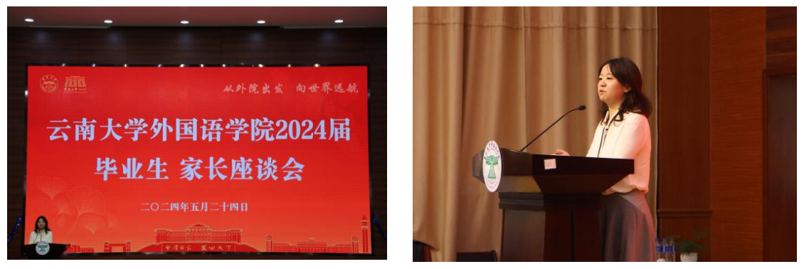 2024年5月24日上午,外国语学院2024届毕业生家长座谈会于外国语学院报告厅召开。本次座谈会由外国语学院党委副书记何淼淼老师主持,详细向毕业生家长们介绍了当前的就业形势。