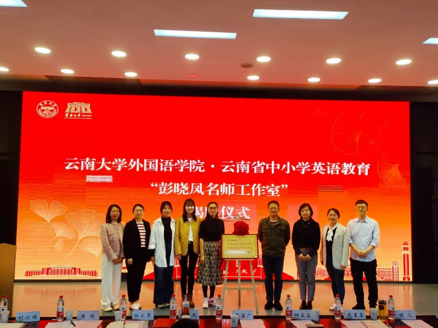 王益广老师和名师工作室主持人彭晓凤老师共同为J9平台·云南省中小学英语教育“彭晓凤名师工作室”揭牌。