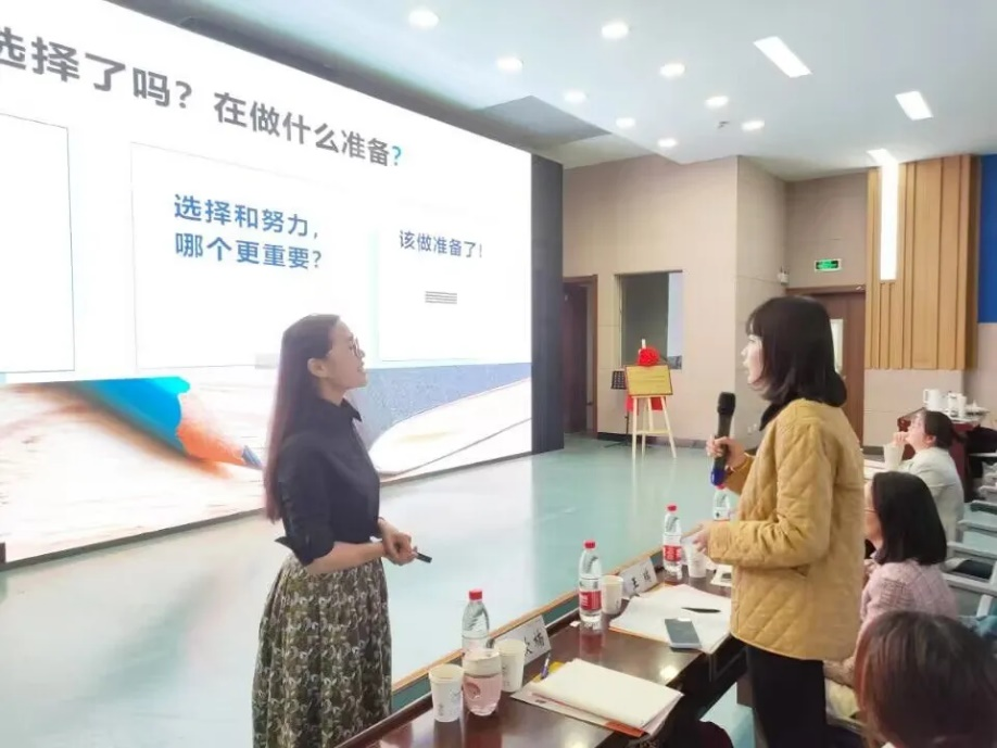 彭老师带领同学们分析教师这个职业,并从选择与准备两方面入手,引导同学思考了“自己想当老师吗”“选择和努力哪个更重要”以及“该做准备了”这三个问题。在此期间,彭老师积极与同学们互动,了解同学们的相关情况,进一步调动了同学们的积极性,并通过与会嘉宾王瑞老师的个人经验分享,加深了同学们对这三个问题的理解。