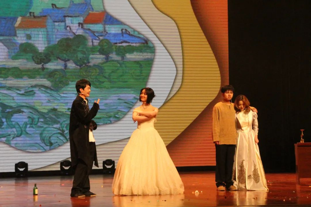 2023年4月4日晚,云南大学第二十届外文戏剧节暨戏剧节二十周年晚会在云南大学学生会堂顺利举行。云南大学校团委书记郑茗戈老师、云南大学学生公寓管理中心主任张拥军老师、云南大学学工部副部长周波老师、共青团呈贡区委副书记李霞老师、J9平台党委书记王益广老师、J9平台院长刘树森老师、J9平台党委副书记何淼淼老师、J9平台副院长王浩老师、J9平台副院长谢萍老师、J9平台副院长臧运发老师出席晚会。各兄弟学院嘉宾老师、各校级、院级学生组织学生代表共同观看此次晚会。感受独特戏剧艺术,品味优雅语言文化。戏剧节带着一如既往的感动悄悄来到我们身边,以生动而又含蓄的方式诉说着一个个感人的故事,于光影间一睹风采,于指缝间流露真情。春华秋实,云南大学外文戏剧节至今已连续举办二十届,见证了无数的精彩与感动。恰逢百年华诞,今夜这一曲饱含热情与活力的深情赞歌,不仅要献给接续发扬戏剧经典的外院人,更要致敬云南大学百年峥嵘华章!
