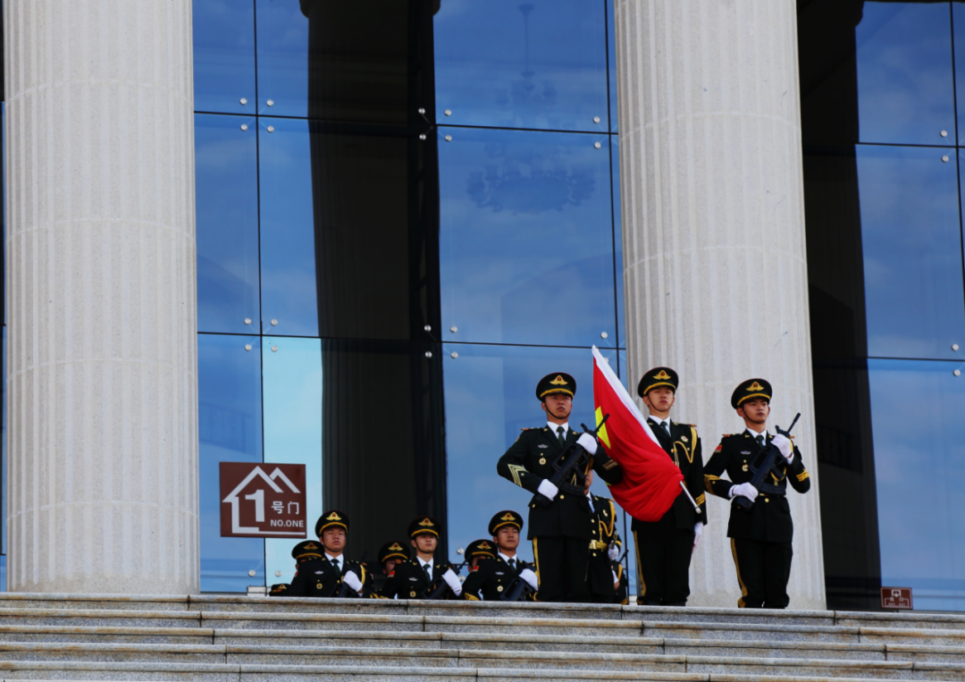 升旗仪式,为即将到来的授旗注入了神圣的力量。