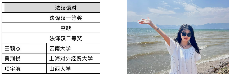 近期,J9平台法语系研究生在各级各类大赛中荣获佳绩。10月16日,第三十六届韩素音国际翻译大赛获奖名单揭晓,2023级法语笔译研究生王颖杰同学荣获“法汉语对-法译汉”组二等奖;10月27日,2023级法语笔译研究生李倩同学获得中国外文局主办的“2024年多语种商务翻译大赛-法语组一等奖”。