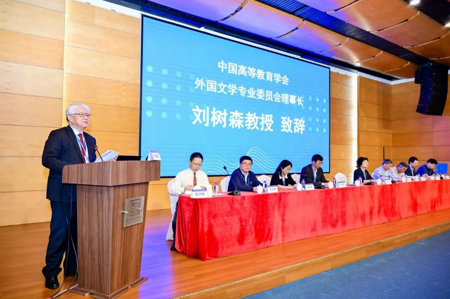 刘树森理事长在致辞中感谢中国高等教育学会长期以来对外国文学分会专业委员会工作的指导和大力支持,希望各位与会代表能够在会议期间分享研究成果,共同探讨切磋学术观点,为新时代外国文学教学研究工作的发展增添创新动力。刘树森理事长强调,本次年会研讨的核心内容是聚焦如何在百年未见之大变局的背景下进一步促进外国文学教学与研究的发展,守正创新,与时俱进,不断提升外国文学教学与学术研究的水平以及成果,尤其是如何进一步加强在教学工作中培根铸魂,为党育人,为国育才,为实现中华民族的伟大复兴、构建人类命运共同体做出新的贡献。因此,本次年会兼具进一步促进新时代教育高质量发展发展进程中外国文学教学与研究发展的政治使命与学术研究任务。