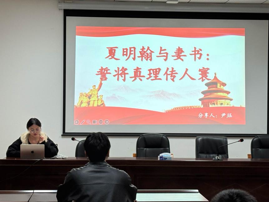 活动伊始,主持人曾伟简要介绍《红色家书》的基本内容:这部作品选编了百余封革命先烈写给亲人的书信,按“明志”“正己”“亲情”“教子”四个篇章分类,文字质朴深切,却承载着沉甸甸的信仰与担当。他指出,这些家书不同于一般的书信往来,它们既是血脉亲情的寄托,更是战火中理想信念的见证,是革命者在艰难岁月中对亲人最深沉的告白,也是对初心使命最真挚的回答。“读这些文字,是一次与信仰的对话;朗读这些片段,是一场穿越历史的心灵共振。”曾伟同学说道。他鼓励大家带着敬意与思考去聆听即将到来的家书朗读,感受文字背后的情感温度与时代回响,也思考今天的我们,如何理解“家国一体”的价值传承。