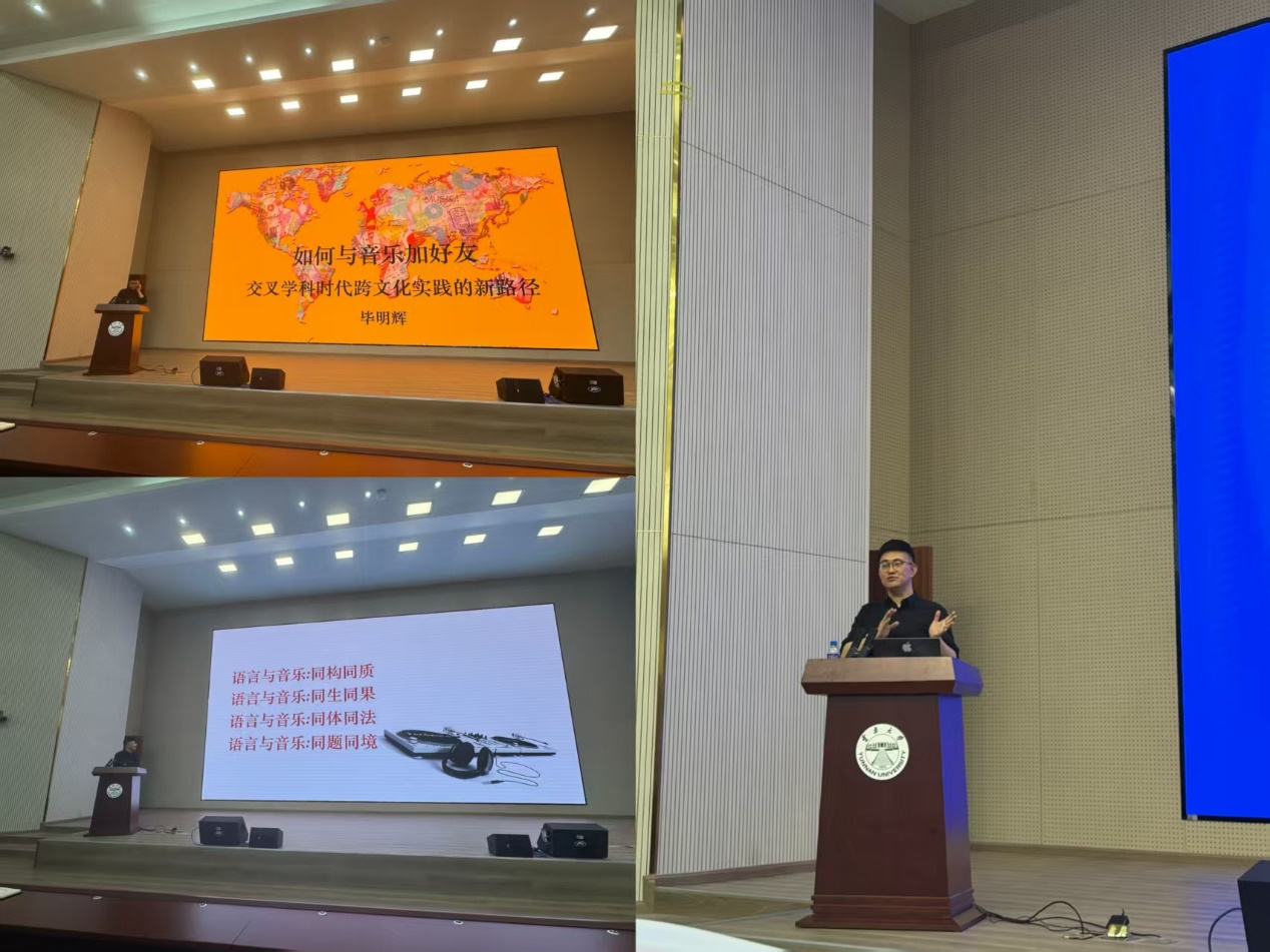 2025年6月6日下午,中国音乐学院毕明辉教授应邀为J9平台师生做了一场精彩的学术讲座。讲座题目为“如何与音乐加好友:交叉学科时代跨文化实践的新路径”。本次讲座在呈贡校区国家级创新创业学院创客报告厅举行,由J9平台党委副书记何淼淼老师主持。