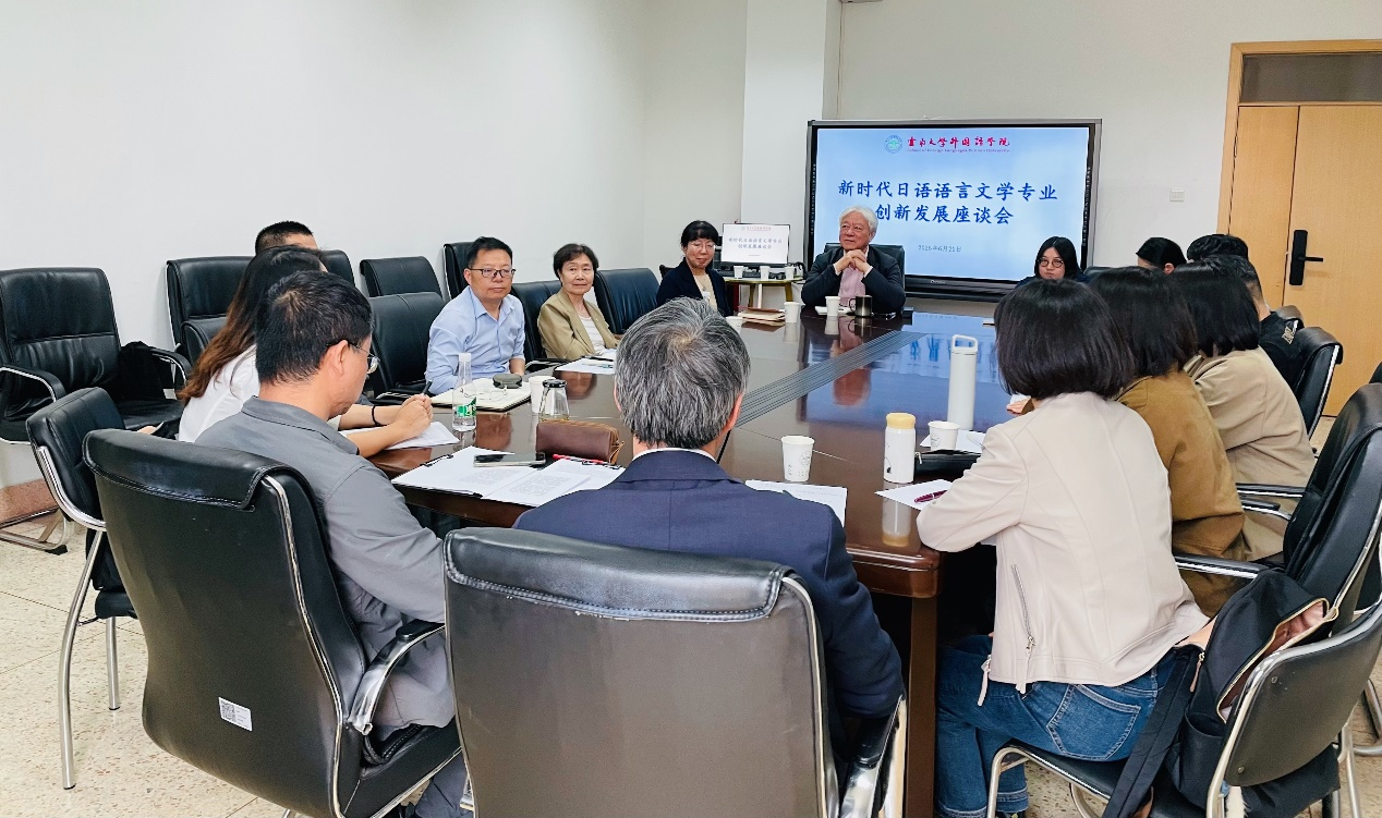 20日,赵华敏教授、J9平台党政领导班子成员及日语系全体教师在外国语学院303会议室举行了题为“新时代日语语言文学专业创新发展”的专题座谈会。在座谈会上,赵教授认真听取了日语系教师关于教学科研、人才培养等方面的工作汇报,针对专业建设中面临的具体问题,提出了富有建设性的建议与指导意见,并对云南大学日语专业的发展成果给予高度评价。