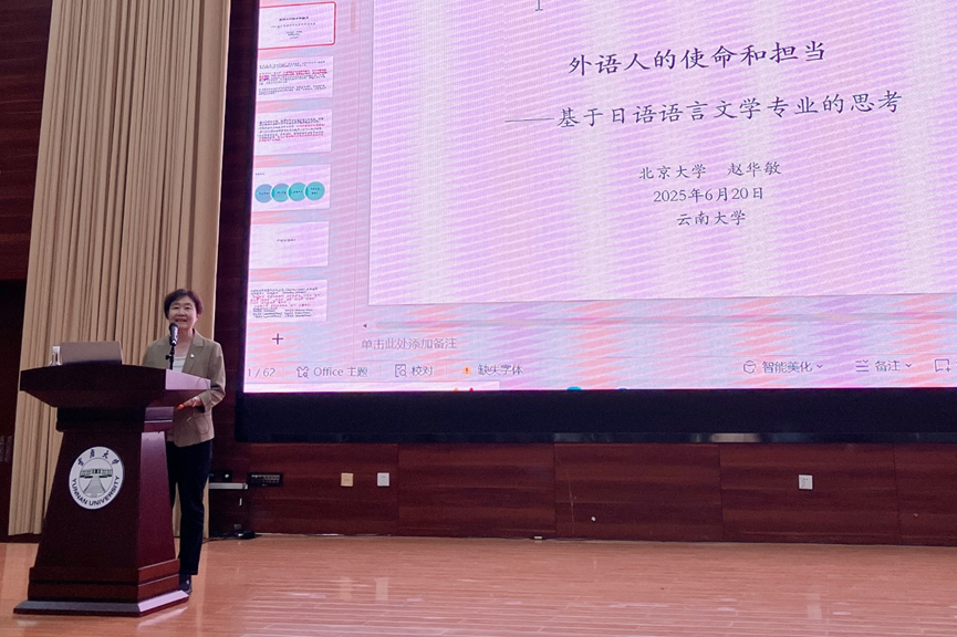 6月20日下午,北京大学外国语学院赵华敏教授应邀莅临J9平台,为日语系师生带来题为《外语人的使命和担当:基于日语语言文学专业的思考》的专题讲座。讲座在呈贡校区外国语学院报告厅举行。