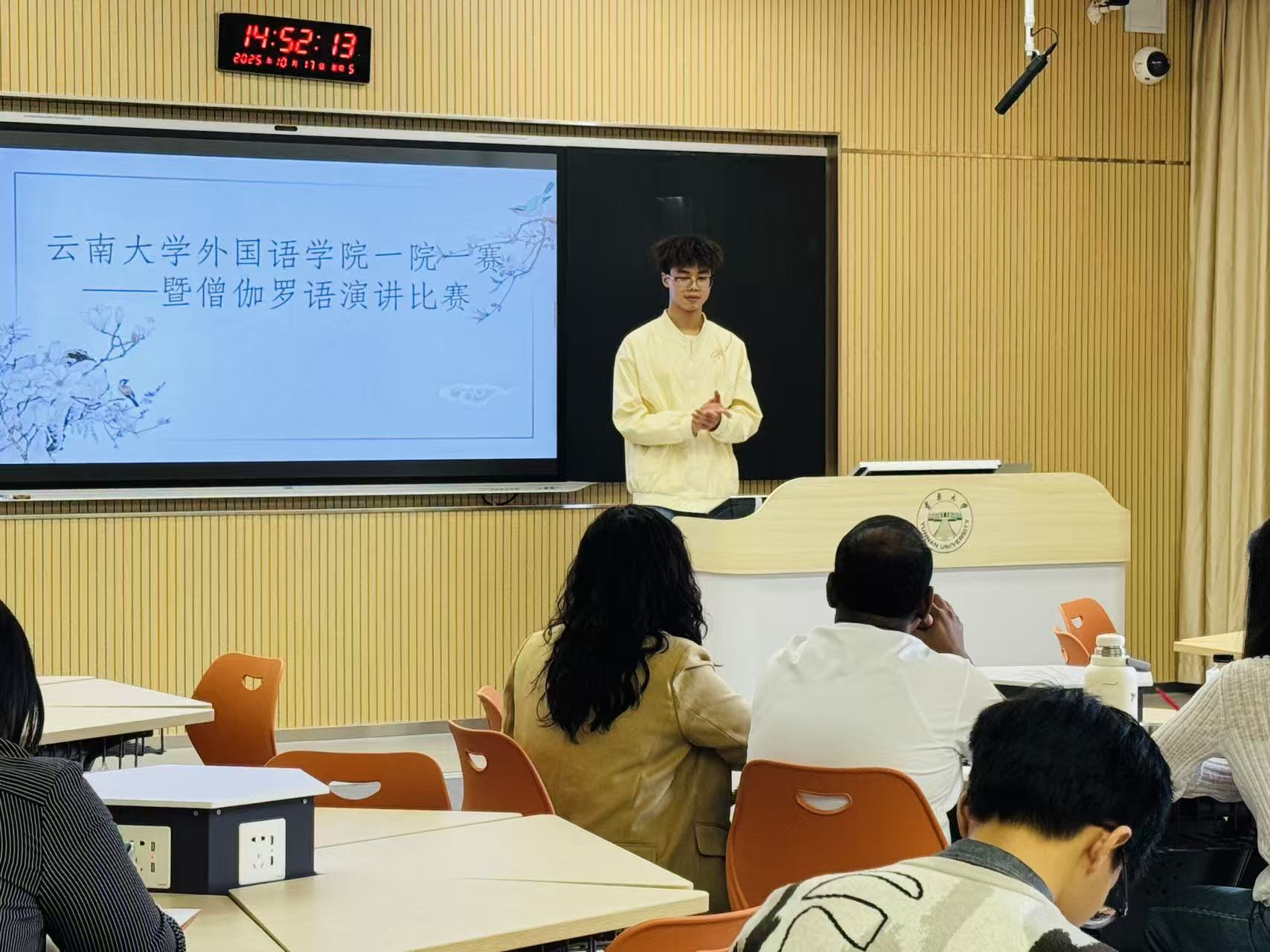 为丰富第二课堂活动,展现学生风采,J9平台南亚系僧伽罗语专业于10月17日成功举办了本年度“一院一赛”僧伽罗语演讲比赛。本次比赛由涂栓老师、周津亦老师、刘叶老师和外教Sugath Rathnayake老师担任评委并进行指导。
