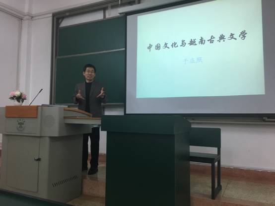 讲座中,于在照教授从中国文化与越南古典文学的奠基、中国文化与越南古典文学的产生、中国文化与越南古典文学的发展、中国文化与越南古典文学的审美心理等几个方面为全体师生介绍了中国文化对越南古典文学的全面影响,让大家再次深刻感受到中越两国文化的交融,特别是中国文化对越南古典文学以及越南人民的文学审美心理产生的深远影响。